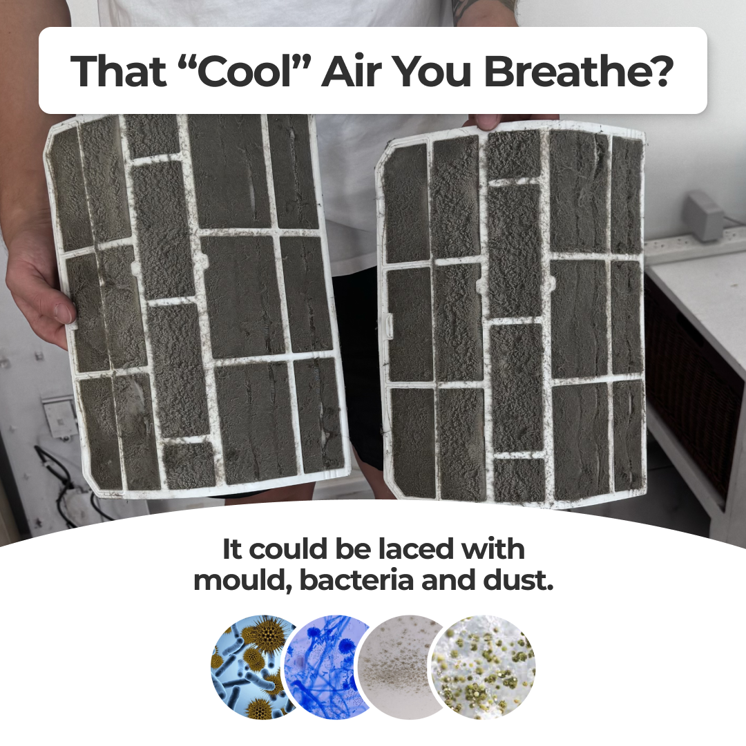 Your aircon is spreading hidden toxins, odours, and allergens through every room. Our DIY Aircon Cleaning Kit gives you everything you need to clean it yourself — in 15 minutes, with no tradie and no additonal tools.